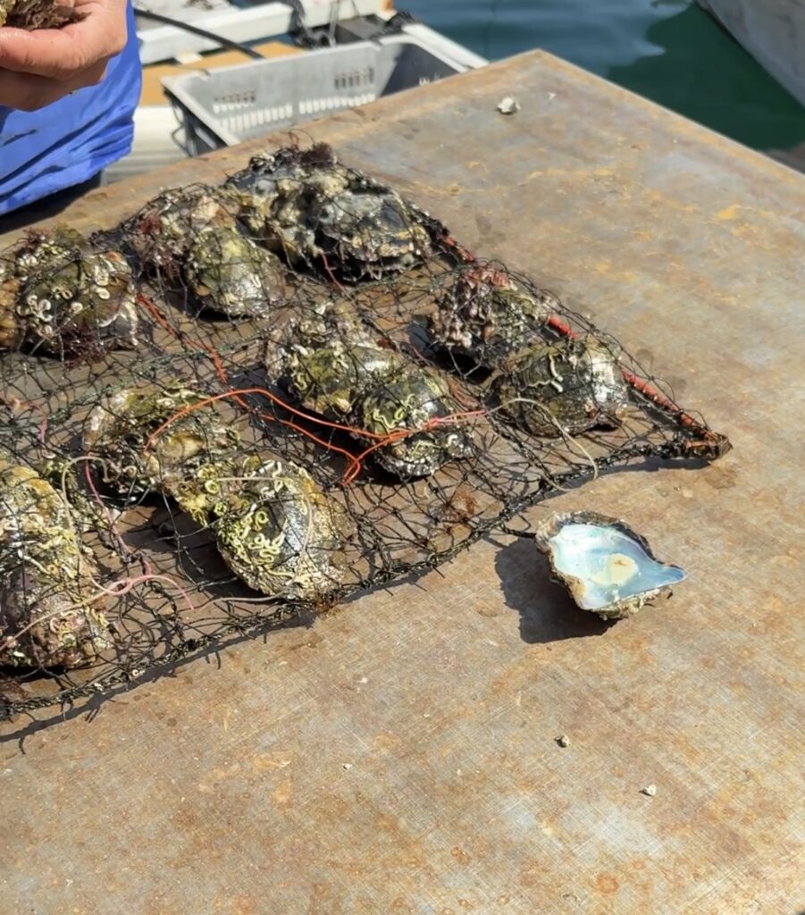 貝殻からつくった丸い核に、真珠質を分泌する小さな細胞を高度な技術で核入れしたものが、海の中で2年くらいかけてこの輝く一粒になる。ゴツゴツした貝殻には海の生き物がたくさんついているけど、その中の見えないところで光輝く真珠の膜を作り続けている。それらの貝を外側から丁寧に世話をする人の手も必要。自分自身で努力するとともに、他者からの新しい教えや支援の力も求めていくことが大切だ。これまでの肩書がなくなる退職後の道のりは、ゼロからの出発。その道のりへの示唆を、真珠の養殖を見て得ることができた。